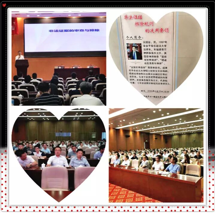 6月23日下午2时,福建壶兰律师事务所主任吴国章律师应常州市律师协会邀请,在常州市行政中心一楼会议中心群贤堂为常州市200多名律师作《非法证据的审查与排除》专题辅导。